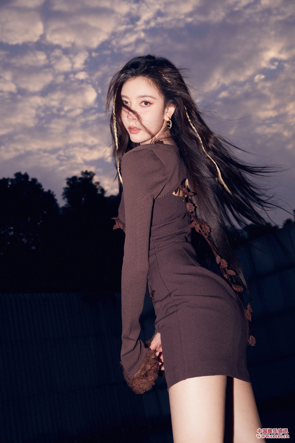 宋妍霏棕色刺繡吊帶連衣裙搭配雪地靴設計感十足