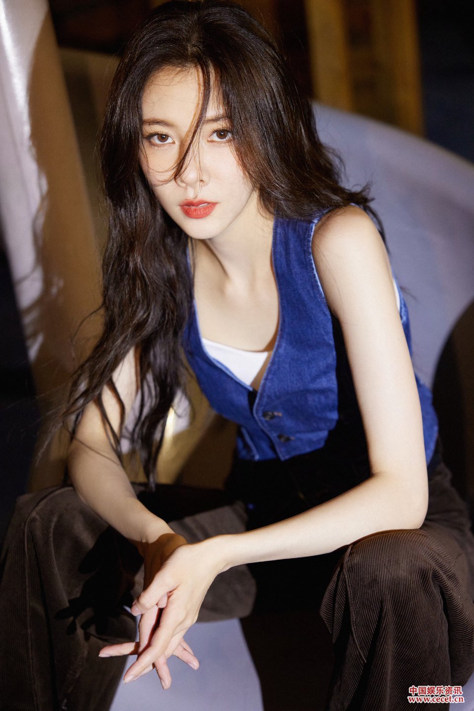 宋妍霏牛仔無(wú)袖馬甲搭配棕色長(cháng)褲盡顯簡(jiǎn)潔酷颯之姿