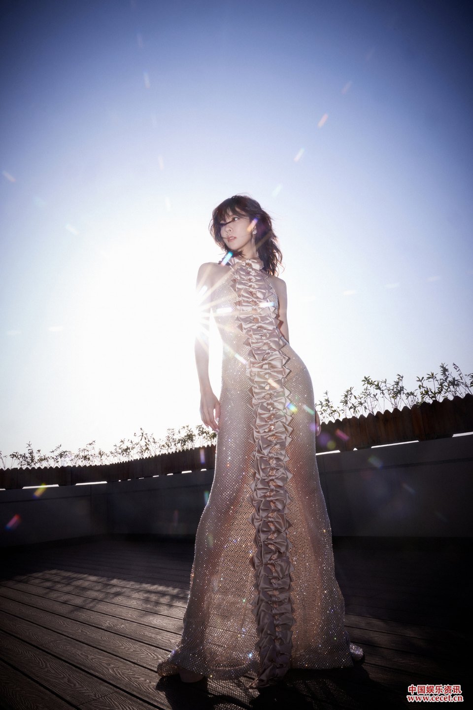 宋妍霏肉粉色鏤空魚(yú)尾裙 裙身鑲鉆點(diǎn)亮潮流之夜