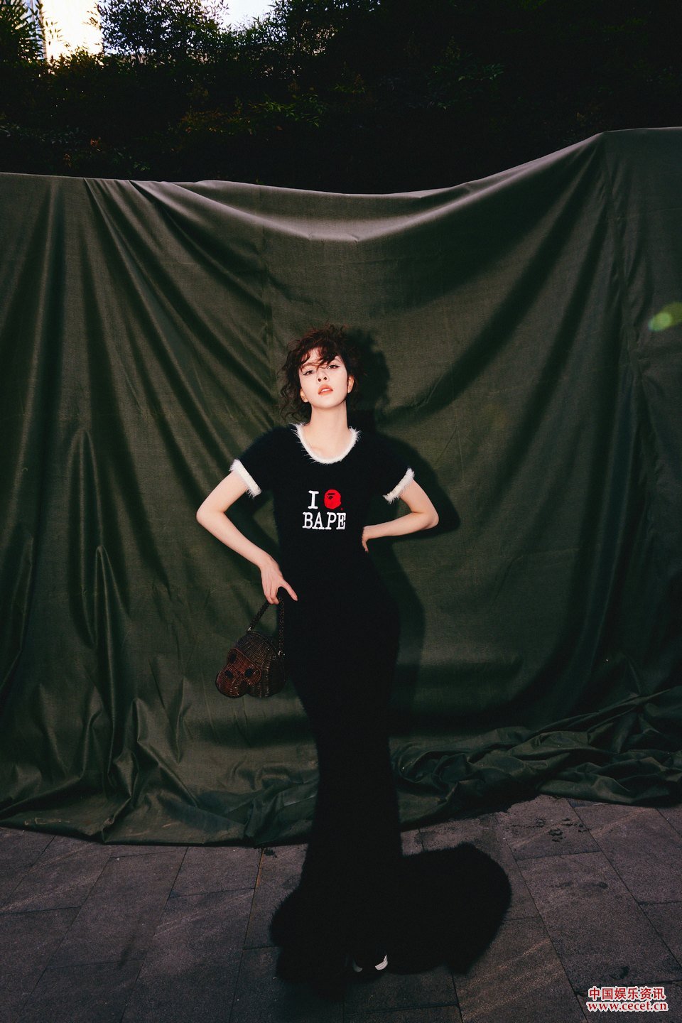 宋妍霏黑色絲絨魚(yú)尾裙優(yōu)雅版型造型感十足