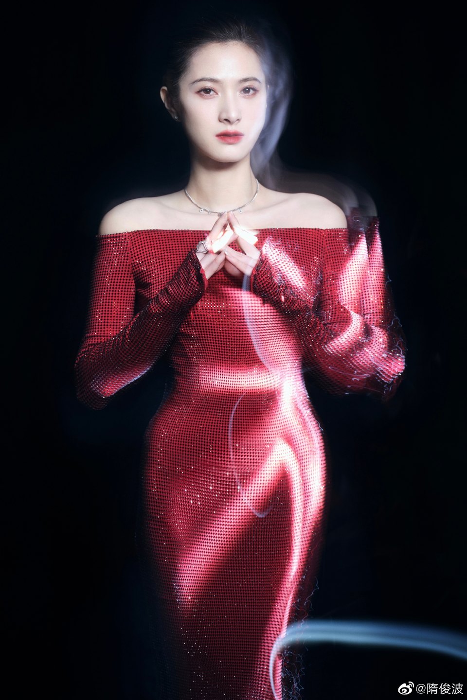 隋俊波齊肩紫色長(cháng)尾裙 悠然間綻放熠熠光彩