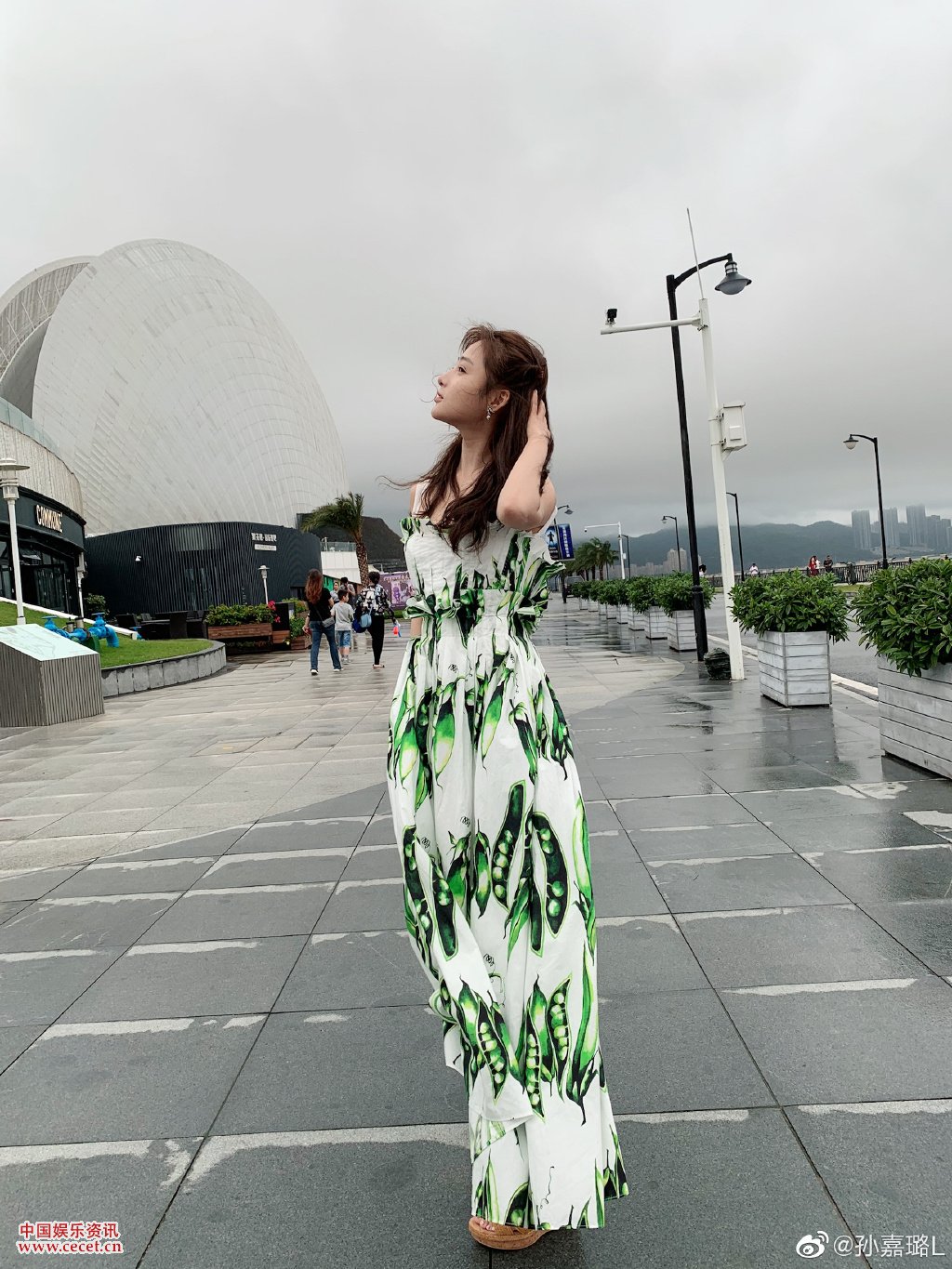 孫嘉璐海邊綠長(cháng)裙美照 打扮飄逸營(yíng)造少女感