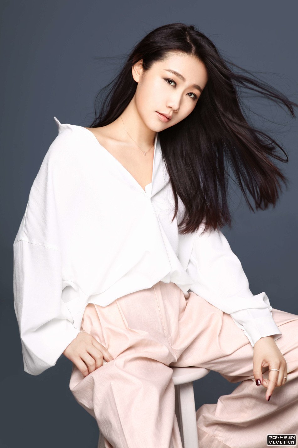 孫露白色襯衫全新寫(xiě)真 藍碎花裙展知性成熟美