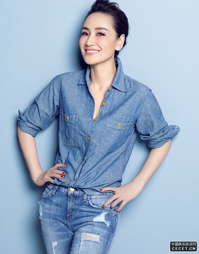 孫寧牛仔套裝干練大片 隨性的笑容小露性感