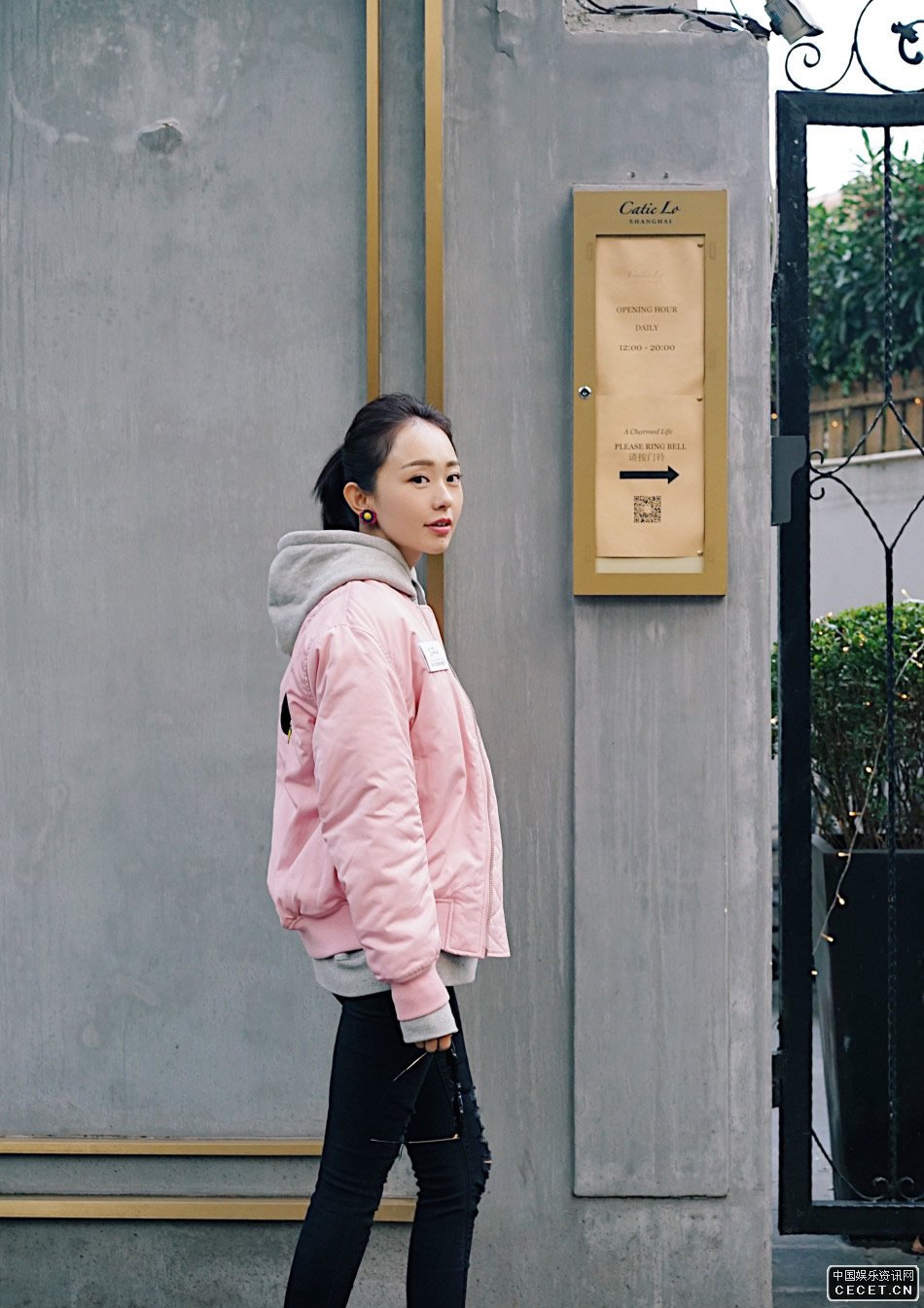 孫耀琦街頭寫(xiě)真曝光 挑戰起粉色飛行員夾克