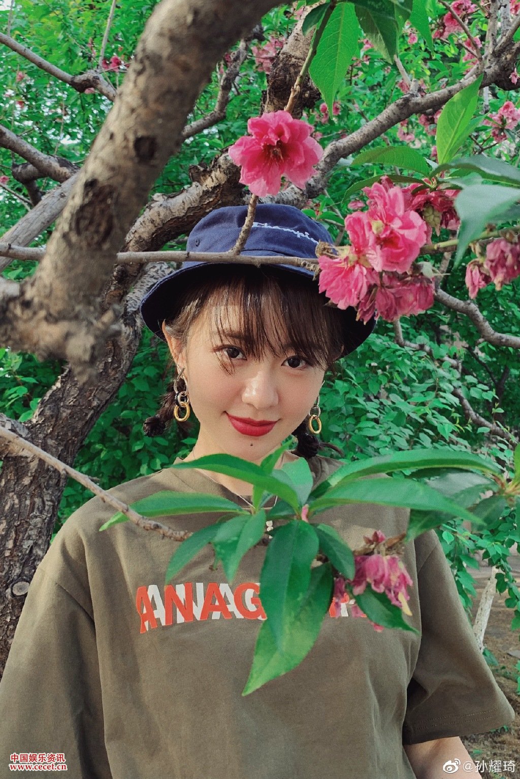 孫耀琦百花叢中郊游照 面若桃花活力滿(mǎn)滿(mǎn)