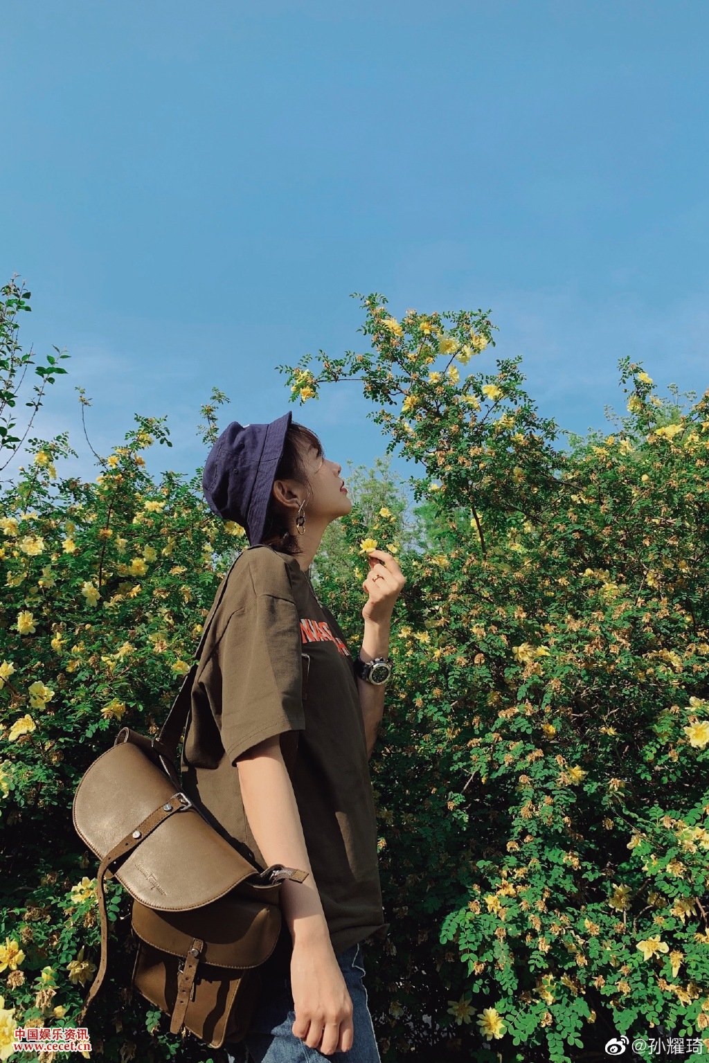 孫耀琦百花叢中郊游照 面若桃花活力滿(mǎn)滿(mǎn)