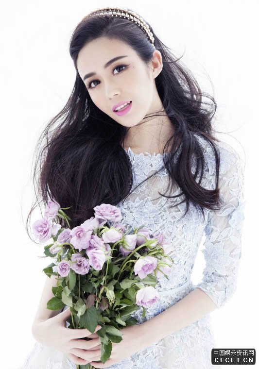 湯晶媚清純風(fēng)雜志寫(xiě)真 白色蕾絲短裙手捧花束