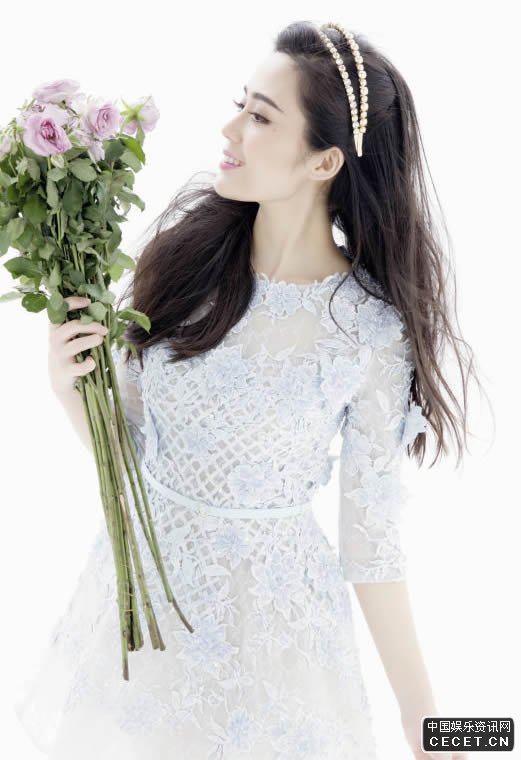 湯晶媚清純風(fēng)雜志寫(xiě)真 白色蕾絲短裙手捧花束