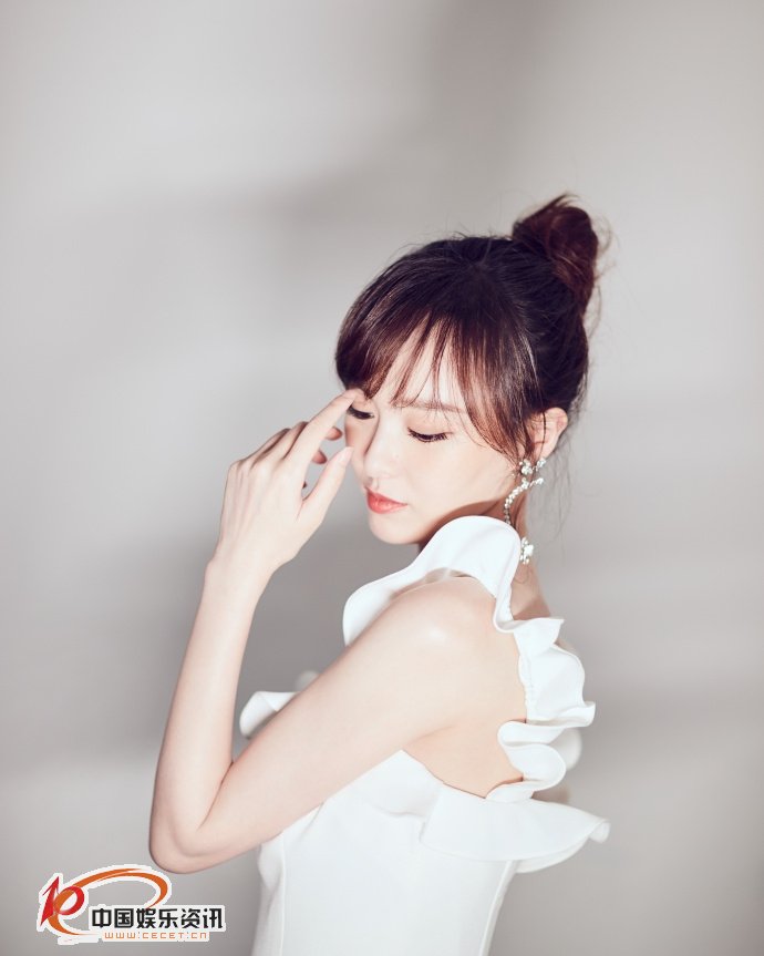 唐嫣身穿白色木耳邊修身連衣裙勾勒出好身材