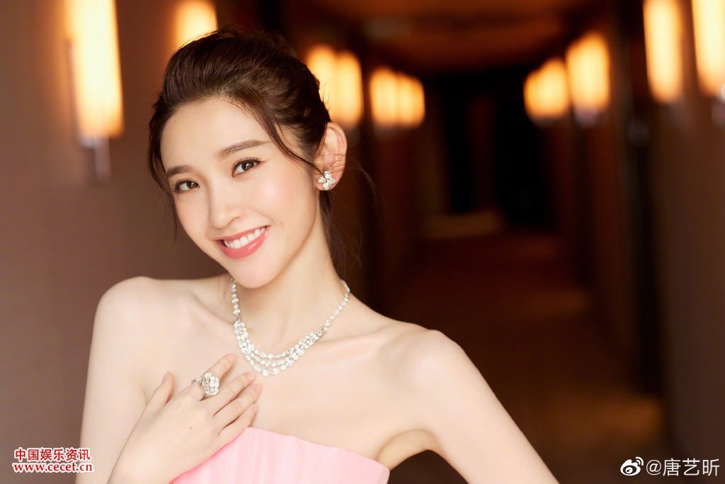 唐藝昕長(cháng)禮服粉嫩登場(chǎng) 梨渦淺笑明媚大方