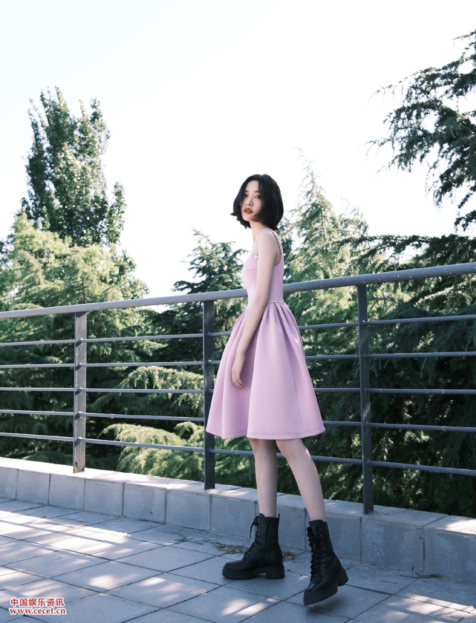 唐藝昕紫碎鉆吊帶裙 剪裁精致詮釋個(gè)性大方