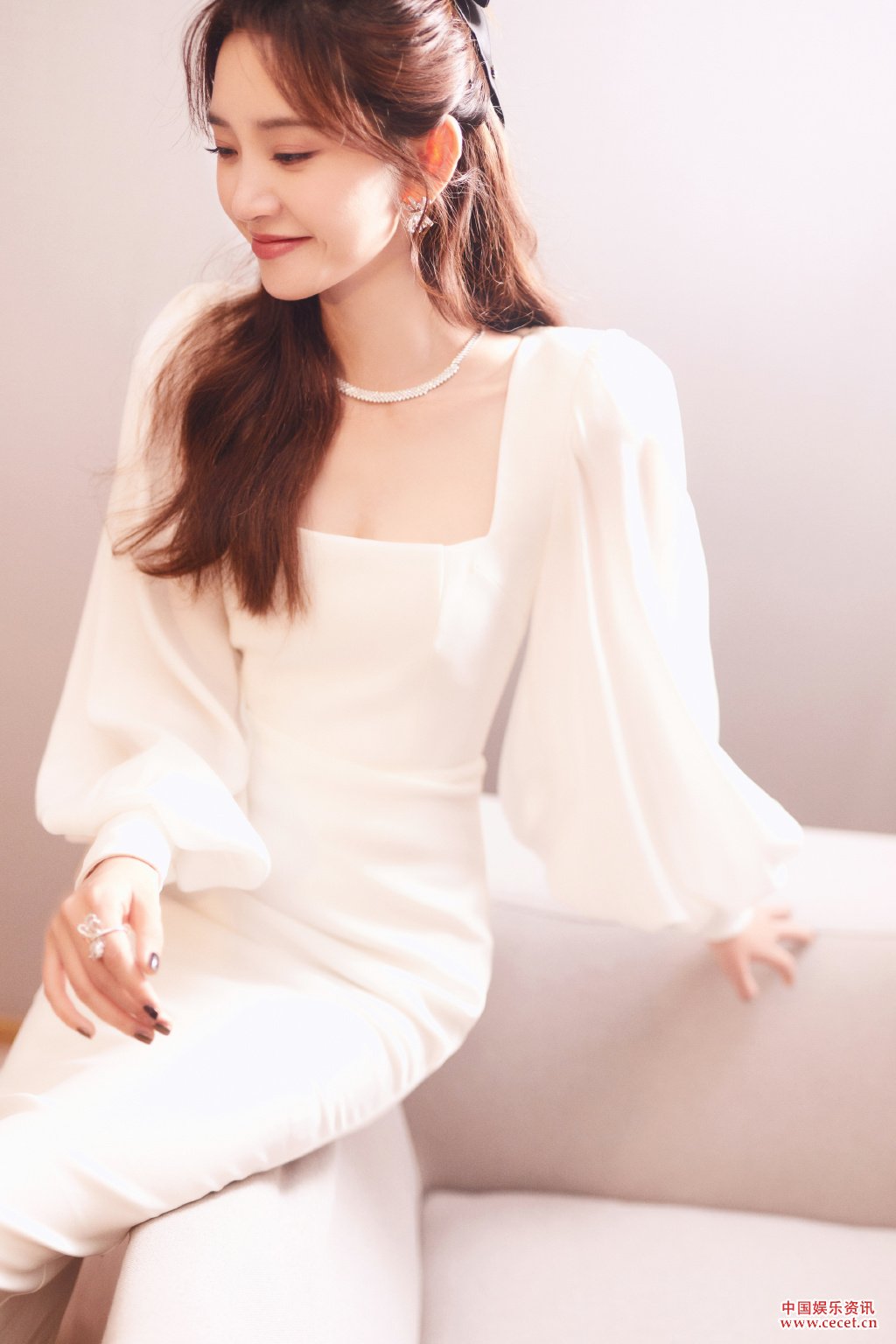 唐藝昕一襲奶白長(cháng)裙與限定長(cháng)發(fā)盡顯溫柔意