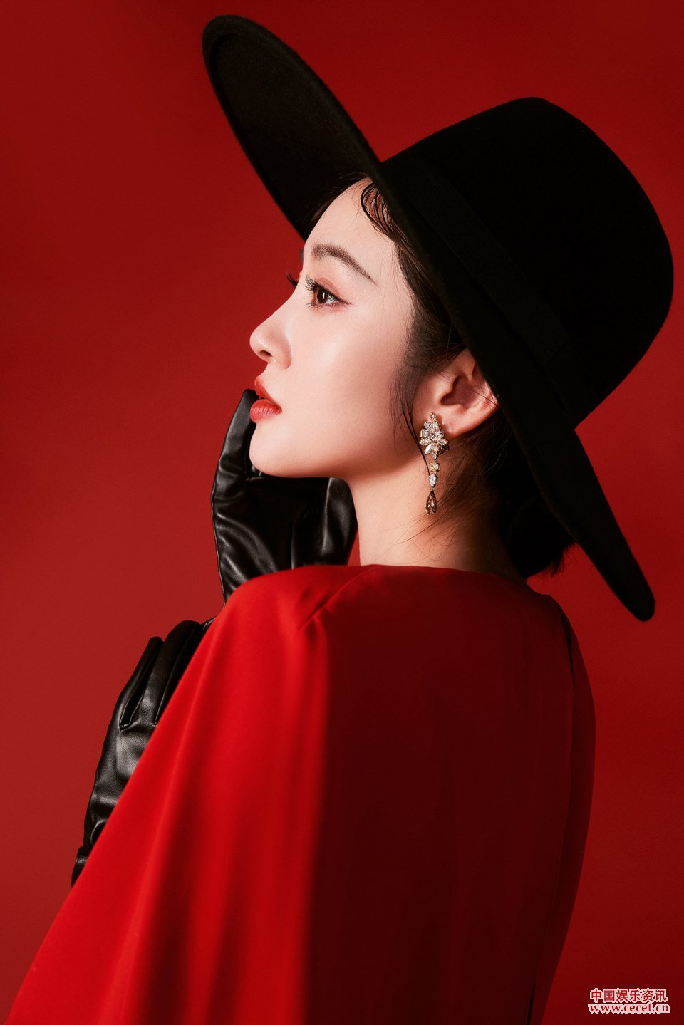 唐藝昕大紅造型喜慶照 摩登復古佳人芳華