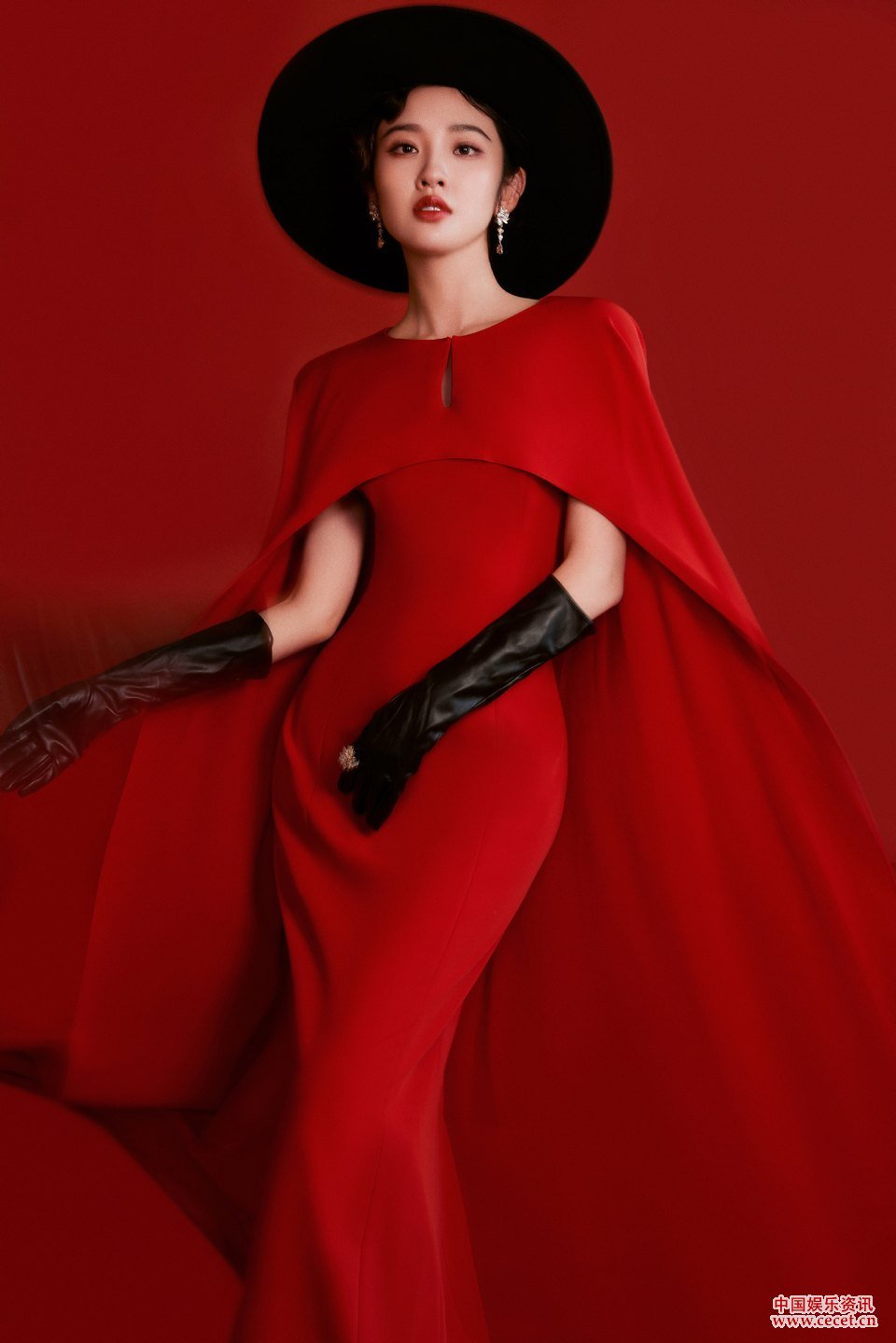 唐藝昕大紅造型喜慶照 摩登復古佳人芳華