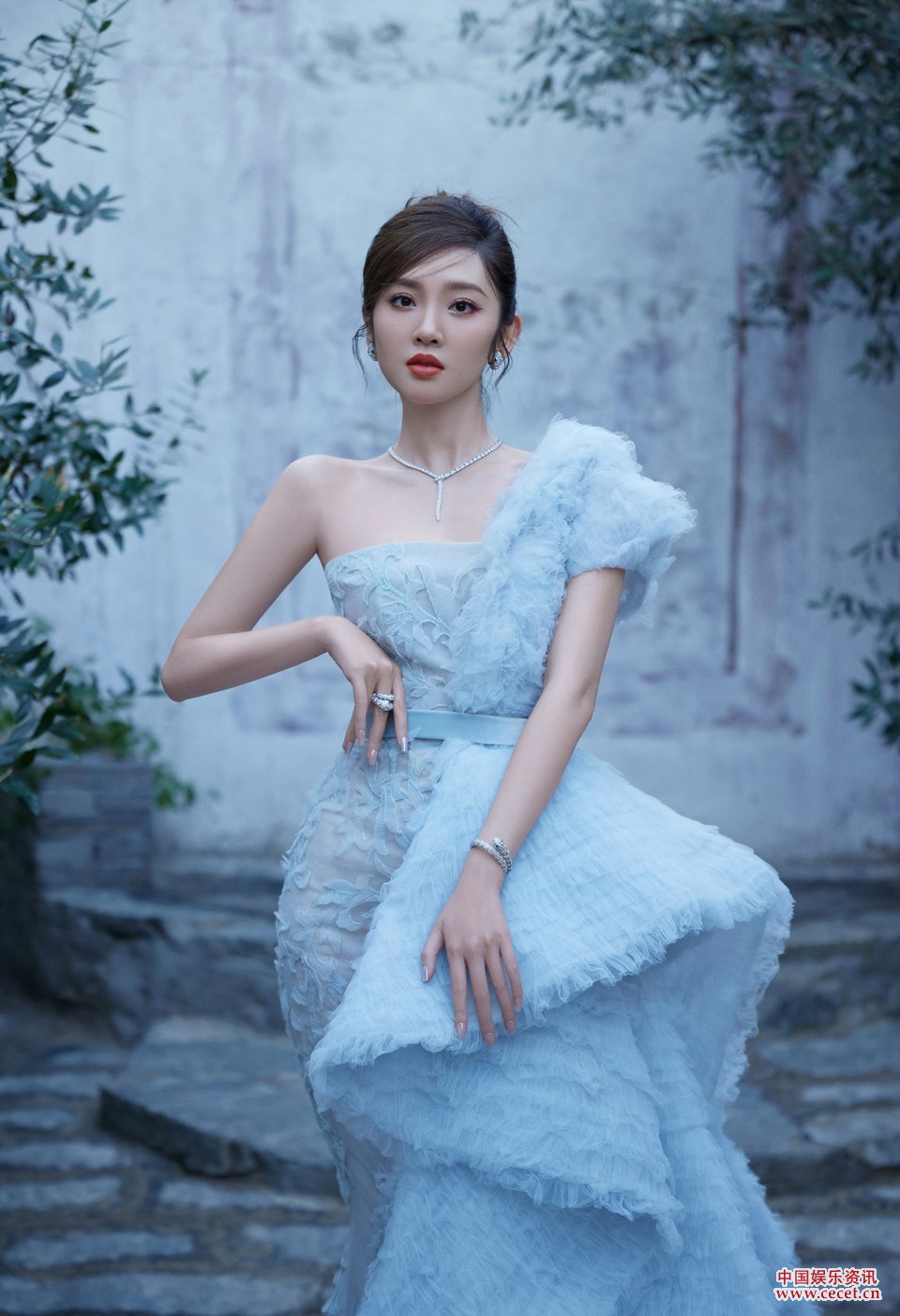 唐藝昕一襲疊紗禮裙于園林間 盡情釋放別樣之姿
