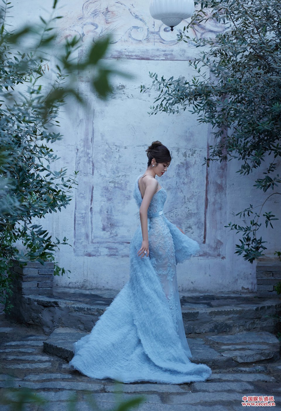 唐藝昕一襲疊紗禮裙于園林間 盡情釋放別樣之姿
