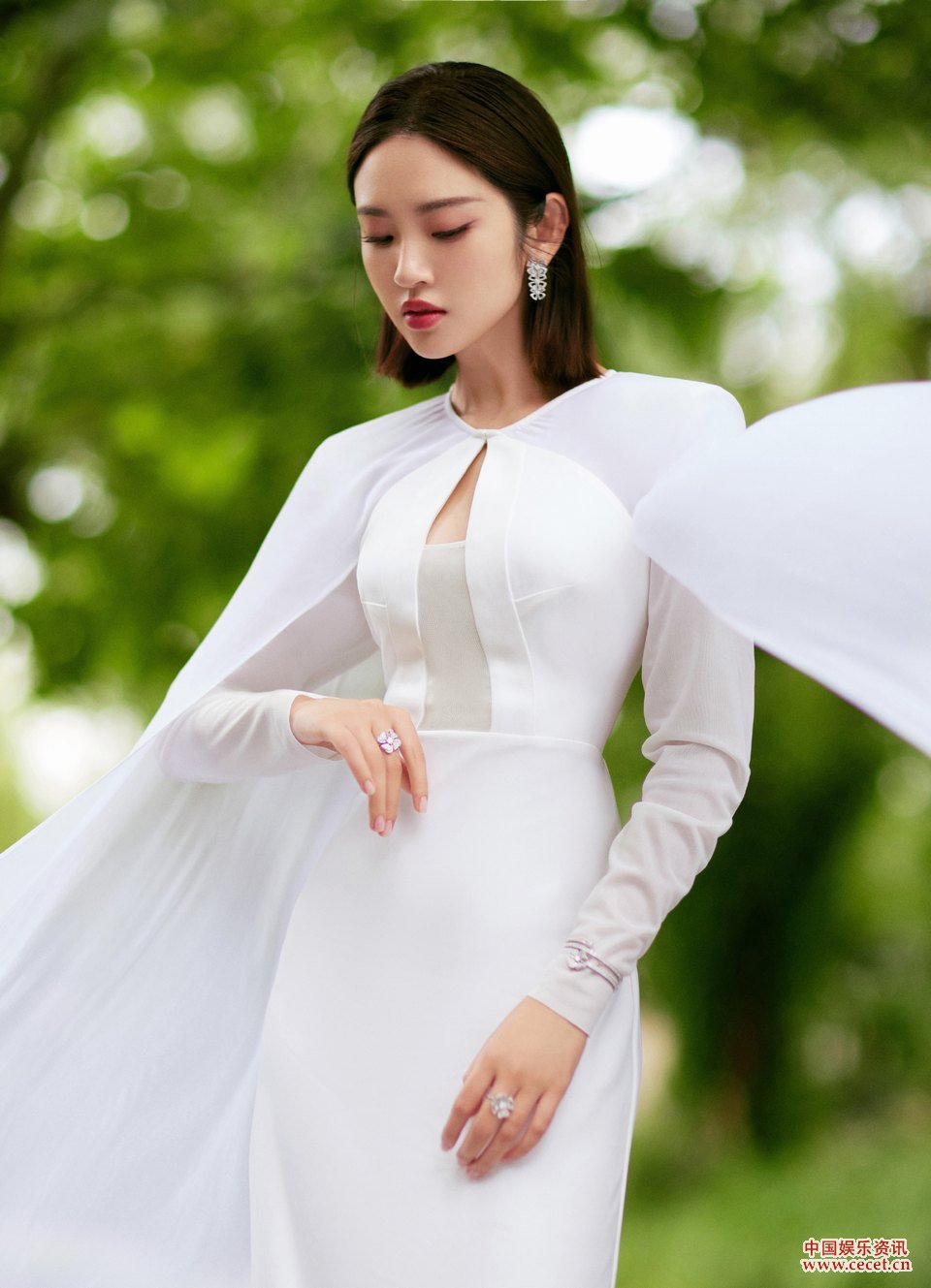 唐藝昕純白色長(cháng)裙置身園林中 上演心動(dòng)邂逅