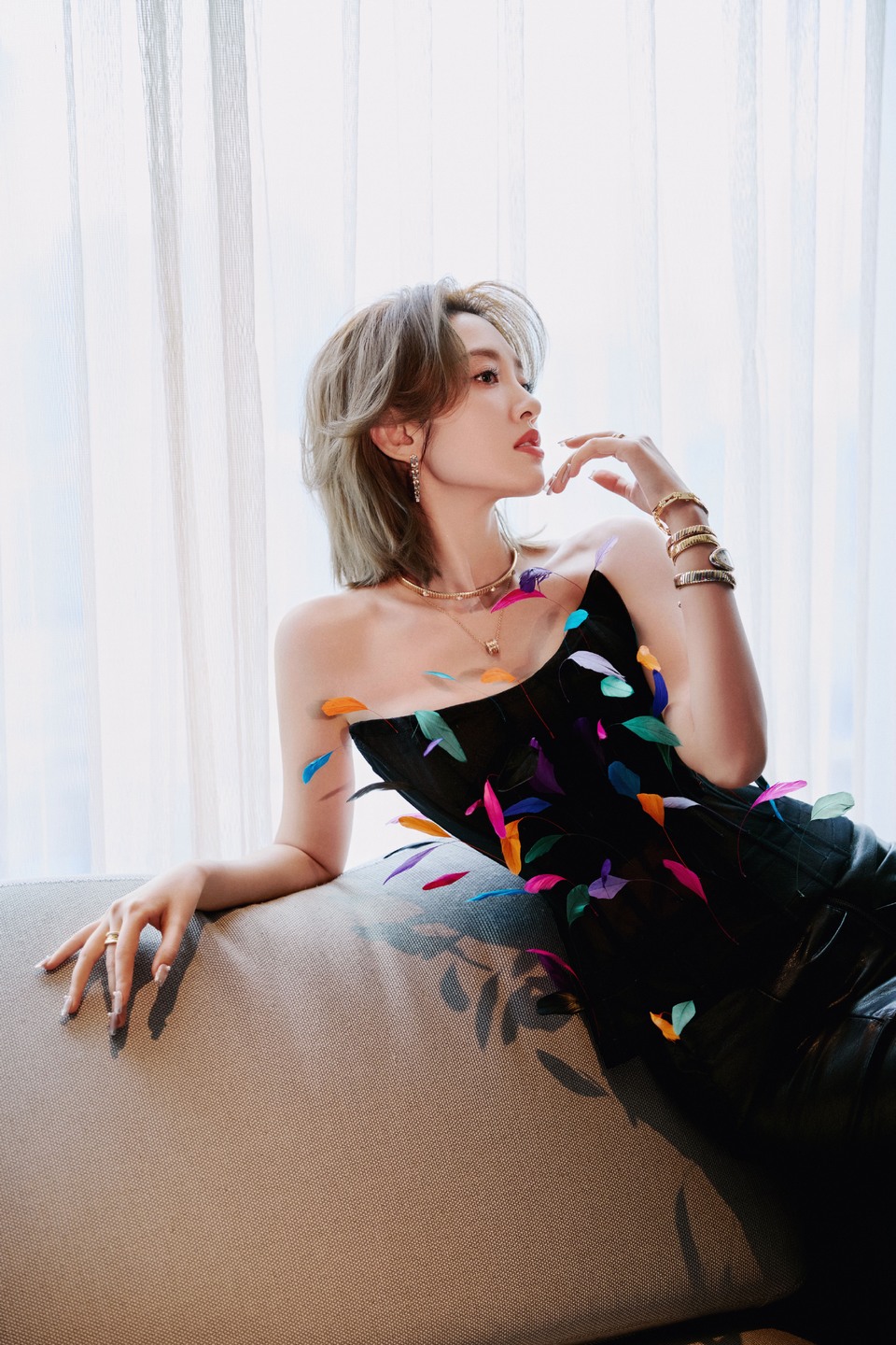 唐藝昕鏡頭鎖定彩色羽毛裙 滿(mǎn)滿(mǎn)的春日氛圍感