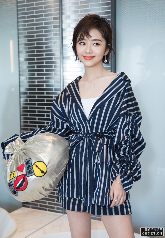 譚松韻著(zhù)帥氣條紋夾克 干練短發(fā)妝容精致