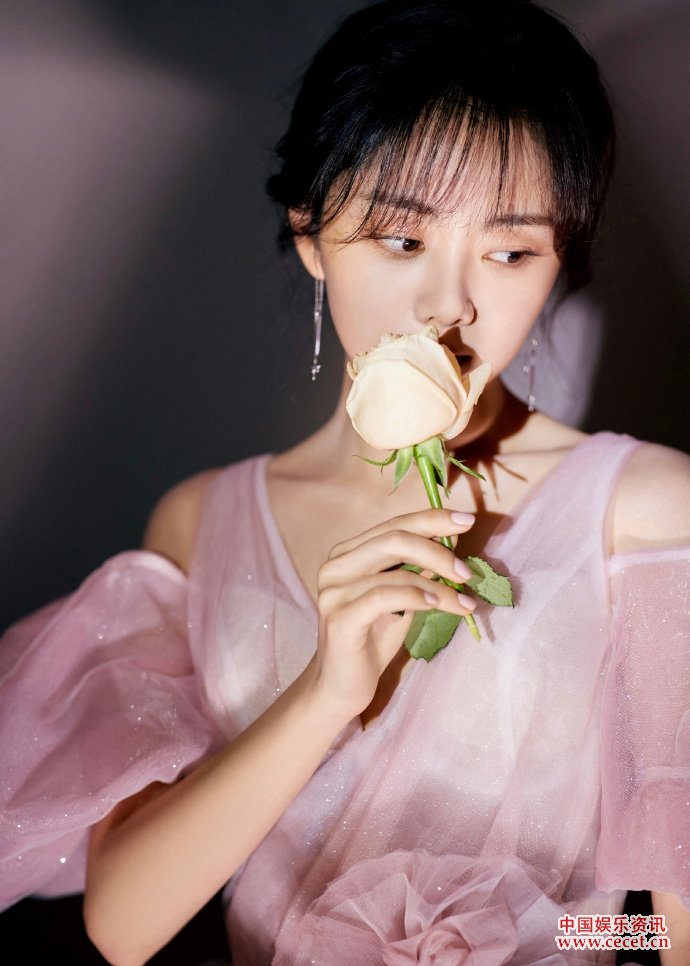 譚松韻蓬蓬裙靈動(dòng)可愛(ài) 手持鮮花眼神十分堅毅