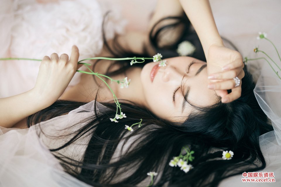 譚松韻嫩粉色輕紗蓬蓬裙 翩翩若仙盡是溫柔