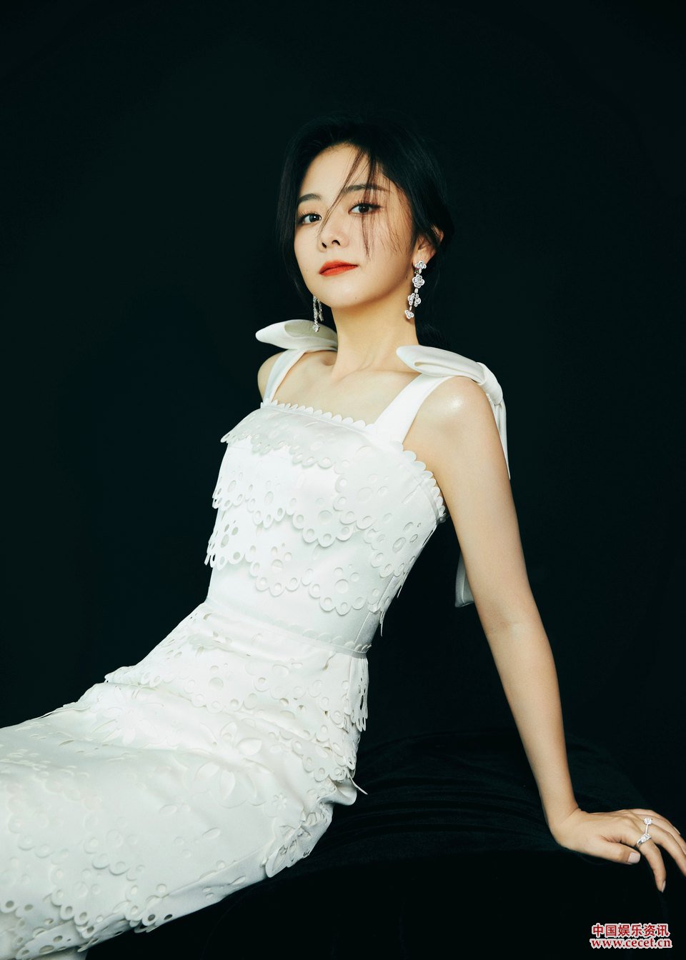 譚松韻白色立體花朵裙 眼波流轉靜待時(shí)刻