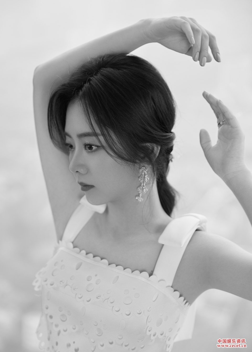 譚松韻白色立體花朵裙 眼波流轉靜待時(shí)刻