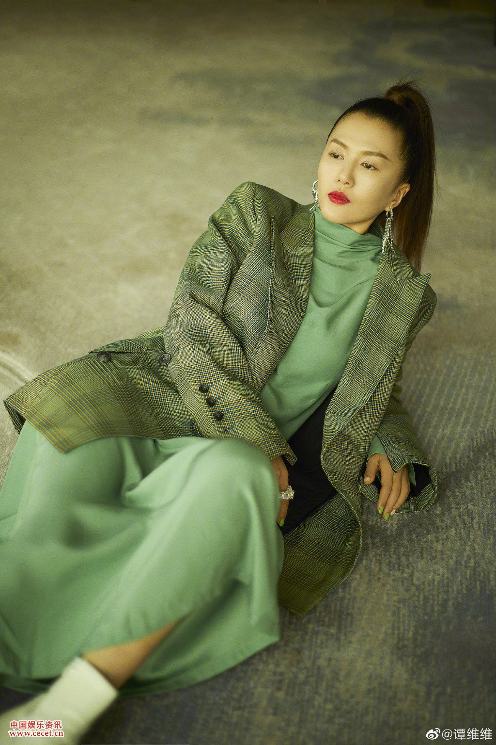 譚維維穿搭營(yíng)造層次感 綠色穿出自己的立秋風(fēng)