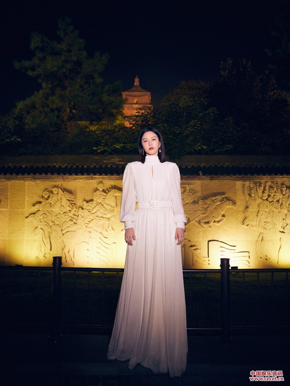 譚維維大雁塔戶(hù)外夜景 白色長(cháng)裙溫婉有氣質(zhì)