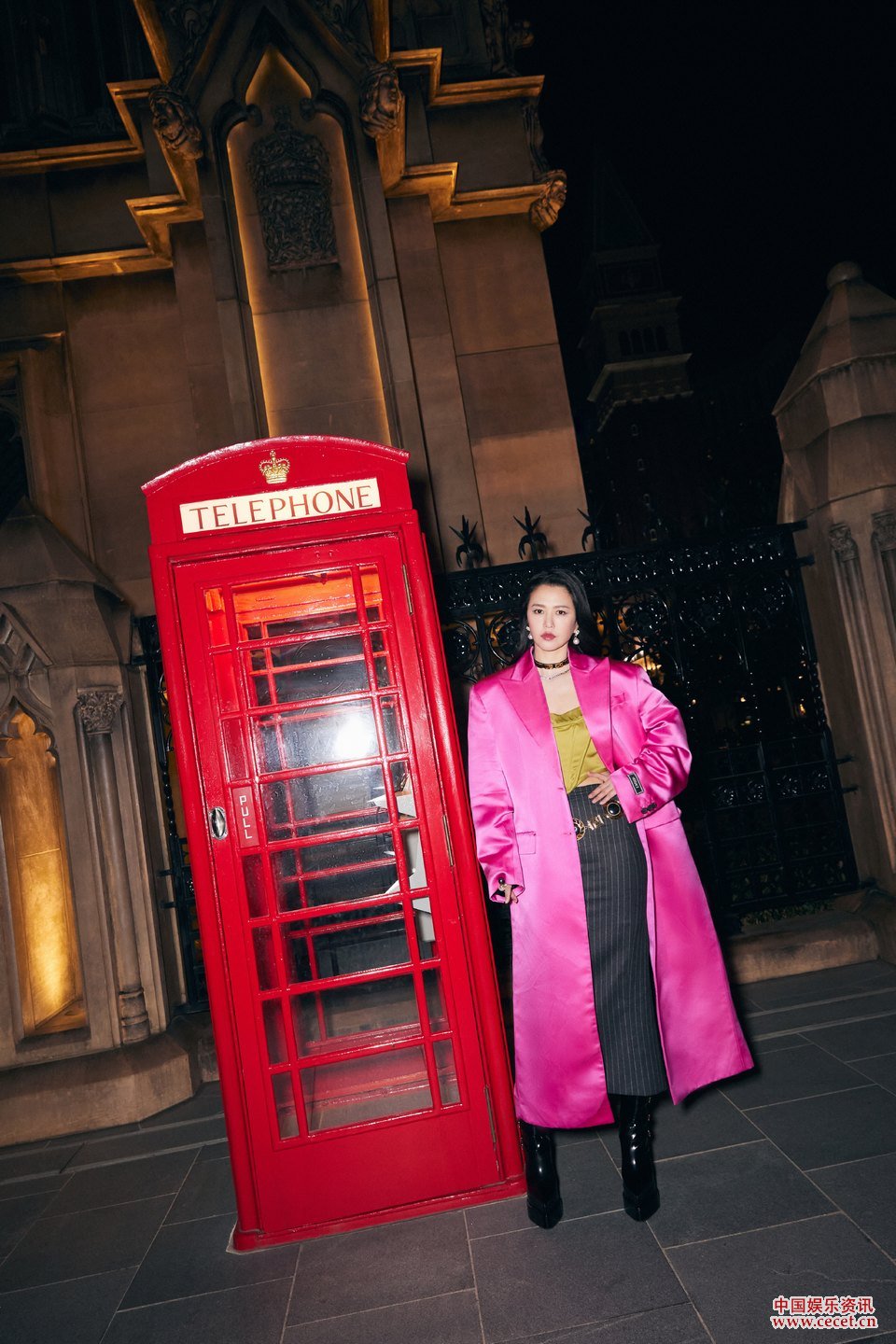 譚維維粉色外套暗夜行 霸氣側漏神秘女郎