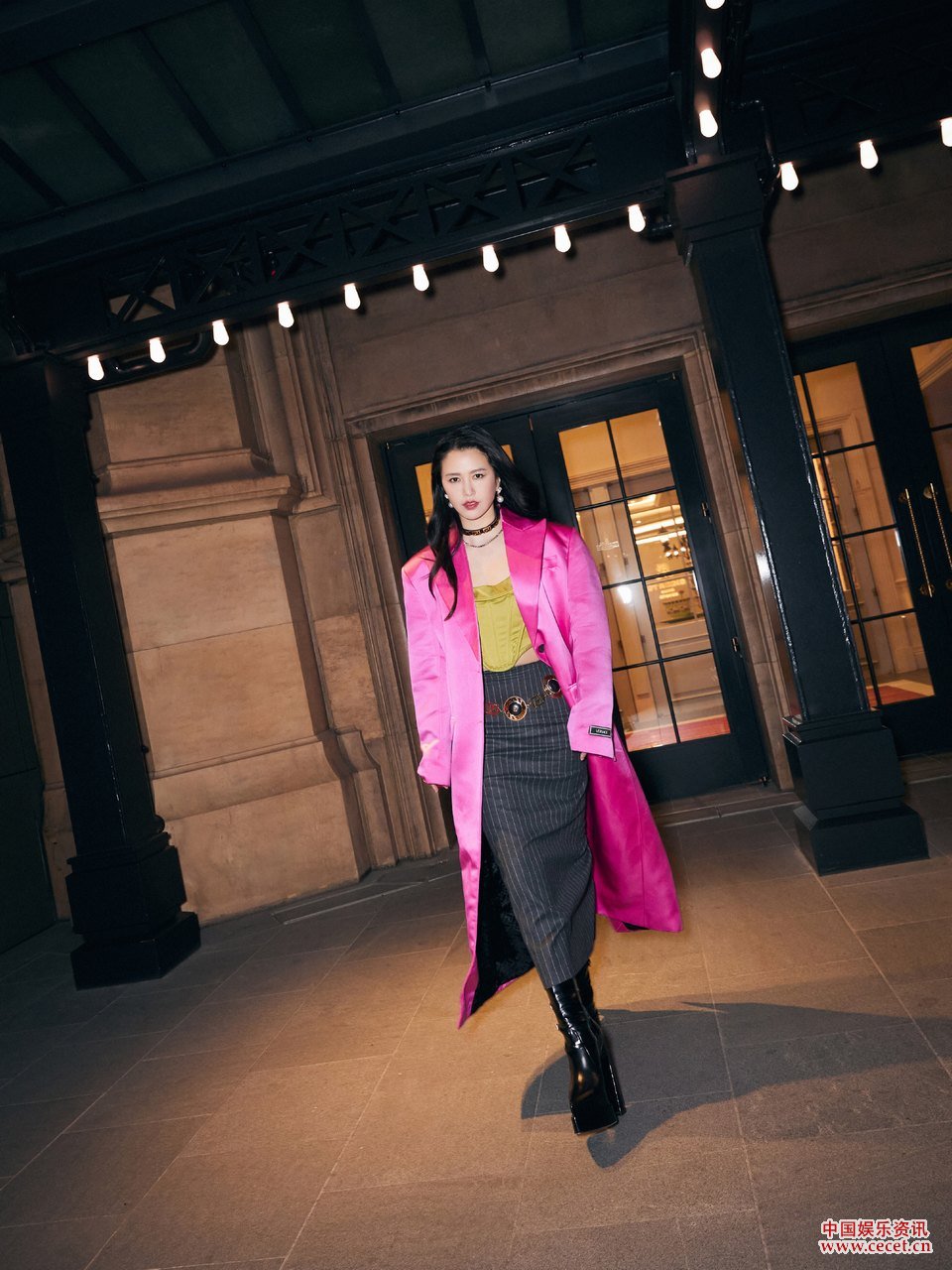 譚維維粉色外套暗夜行 霸氣側漏神秘女郎