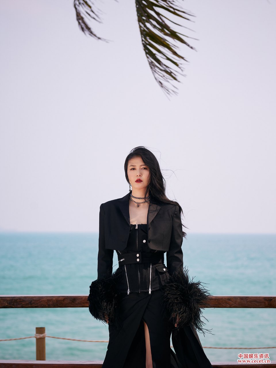 譚維維海灘大片 海風(fēng)吹拂氣質(zhì)從容定格美好
