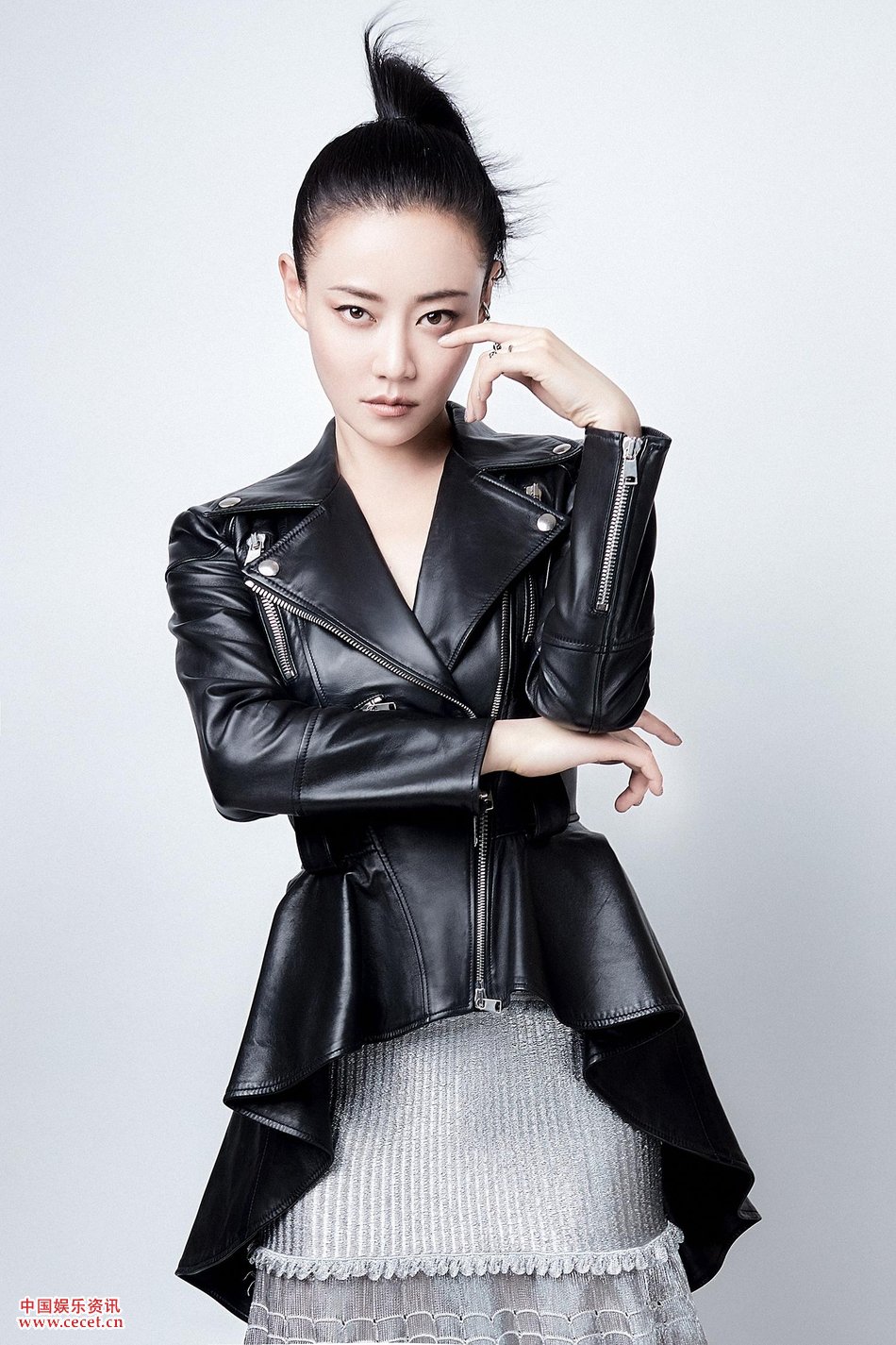 譚卓皮衣紗裙硬核風(fēng)格 個(gè)性女郎酷炫來(lái)襲