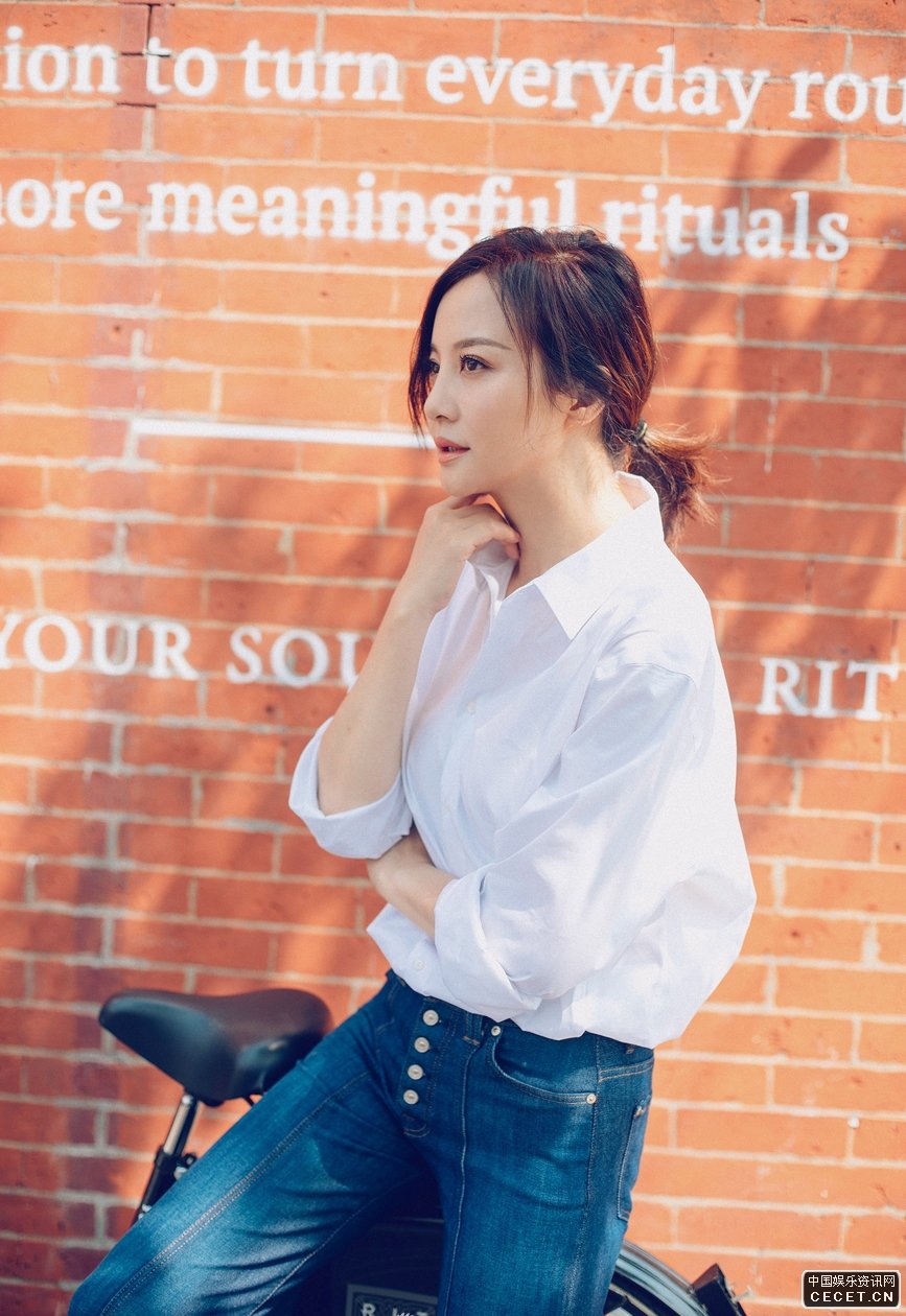 陶紅白襯衫搭配牛仔褲 輕松打造出完美比例