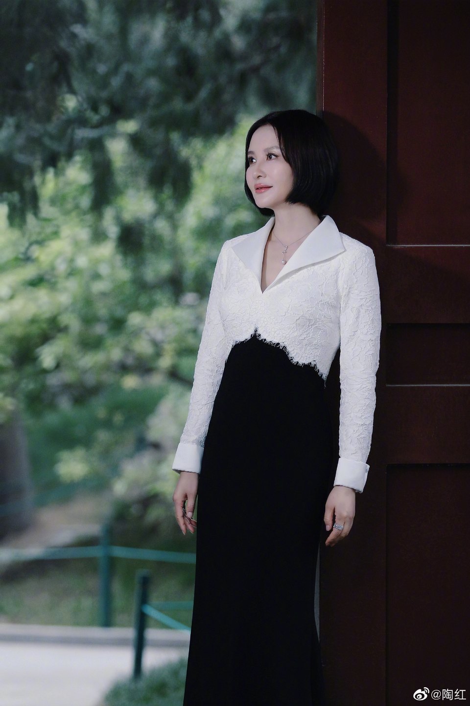 陶紅黑白長(cháng)裙搭配氣質(zhì)短發(fā) 颯爽干練端莊大氣