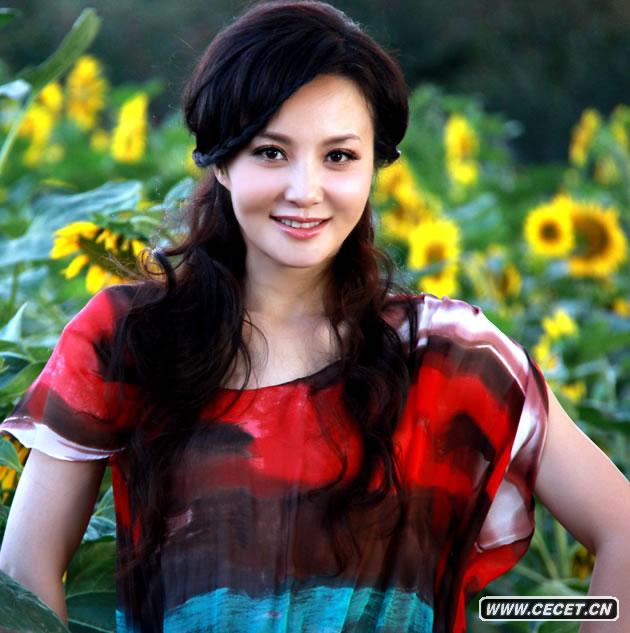 陶紅拍攝秋日寫(xiě)真 一身紅裝火焰般耀眼奪目