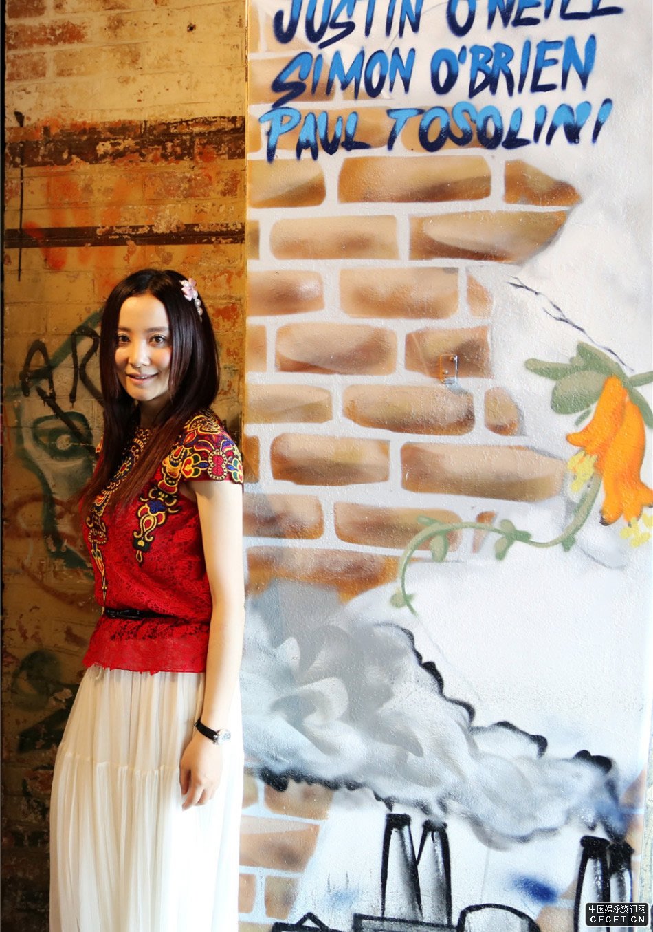 大陶紅國外度假拍寫(xiě)真 中國風(fēng)刺繡紅上衣