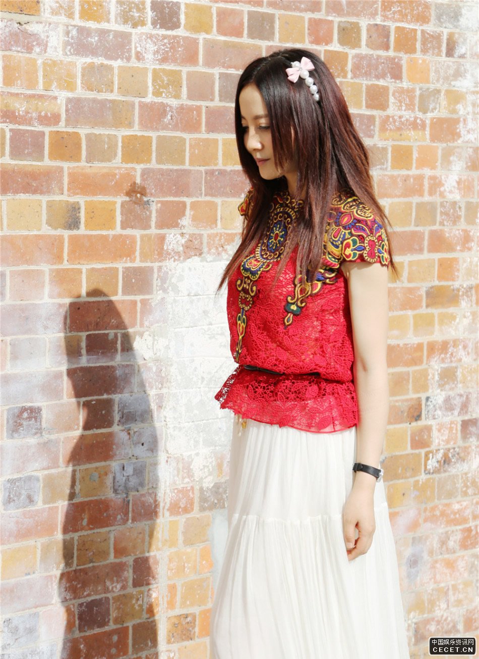 大陶紅國外度假拍寫(xiě)真 中國風(fēng)刺繡紅上衣