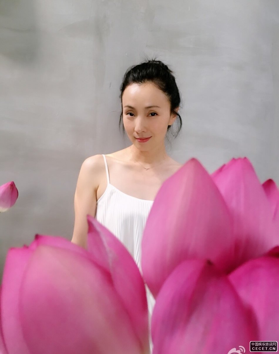 陶虹捧荷花拍夏日寫(xiě)真 氣質(zhì)清新脫俗似少女