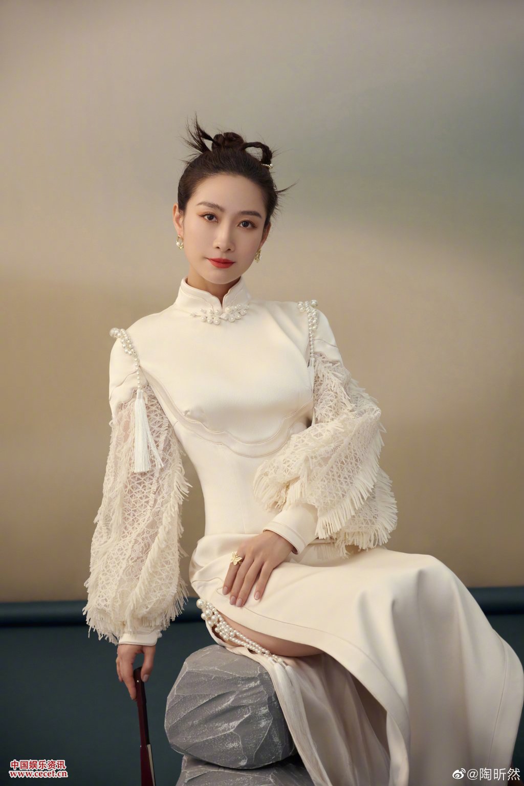 陶昕然乳白長(cháng)款旗袍照 靜止優(yōu)雅溫柔隨性