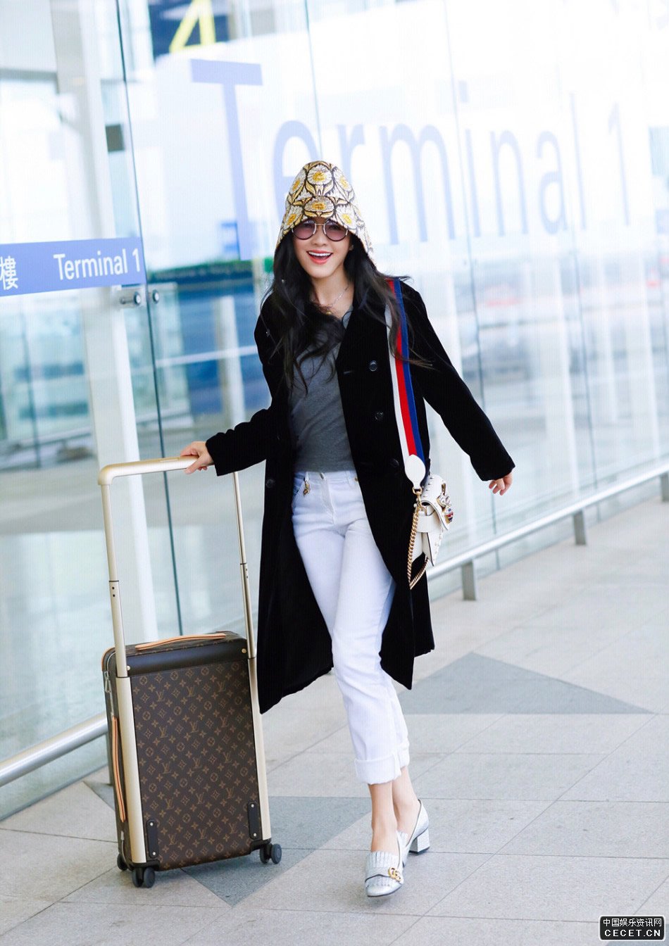 田海蓉機場(chǎng)優(yōu)雅造型 灰T白褲透露著(zhù)大方愜意