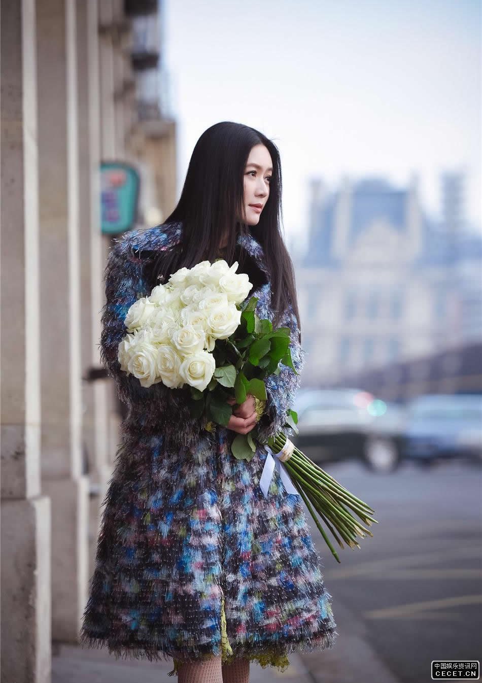 田海蓉異國的街拍大片 明眸善睞膚若凝脂