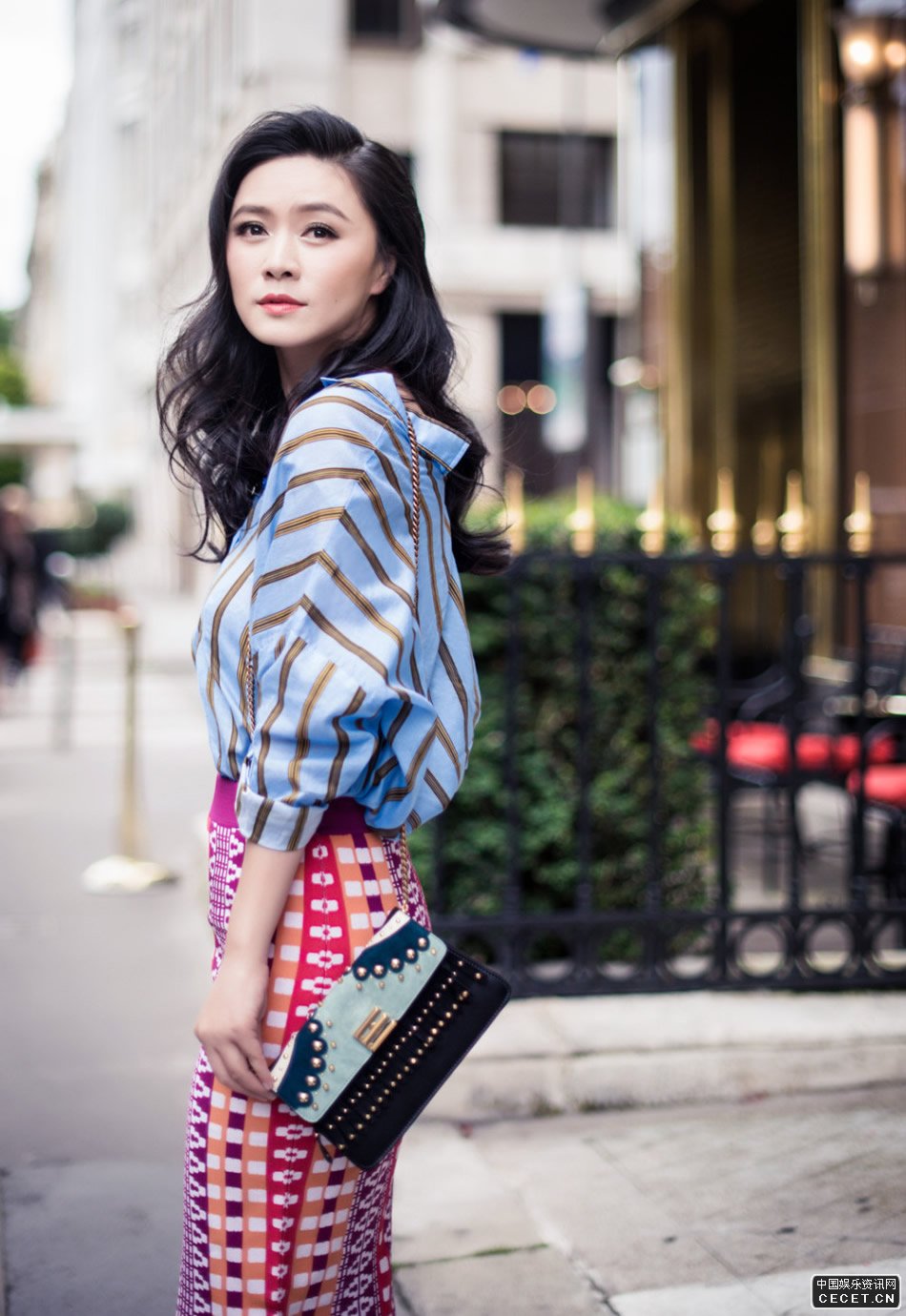 田海蓉漫步于巴黎街頭 高腰針織長(cháng)裙輕盈優(yōu)雅