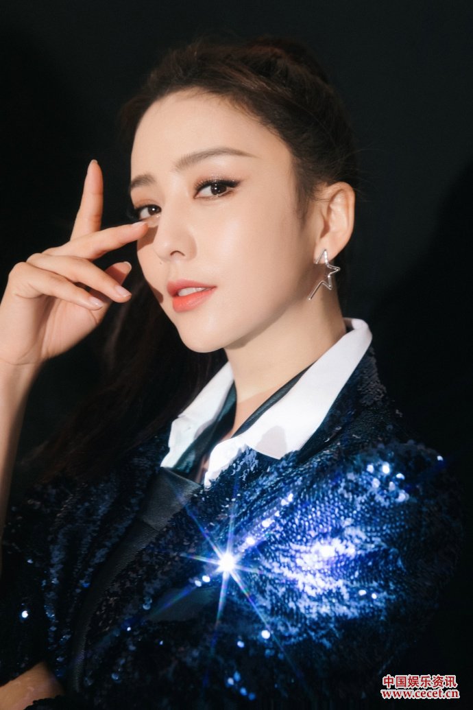 佟麗婭藍色亮片西裝搭配熱褲 美腿又細又直