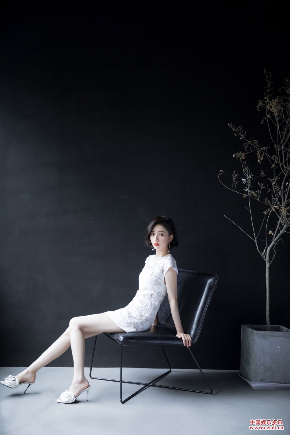 佟麗婭刺繡白裙清新靜雅 微卷短發(fā)精致時(shí)髦
