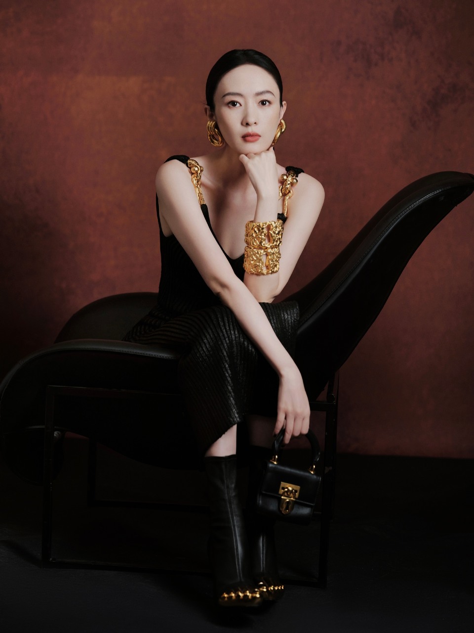 童瑤一襲修身黑金長(cháng)裙 宛若古典油畫(huà)中款款而來(lái)