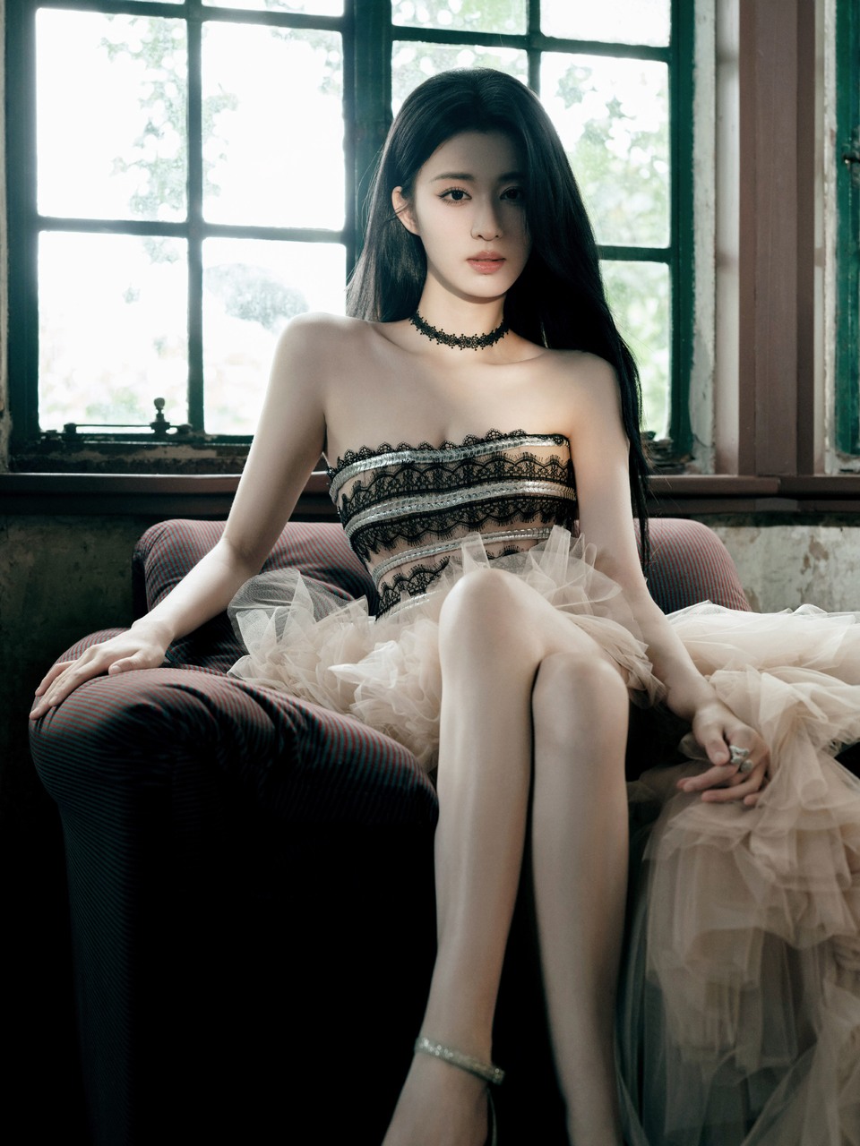 王楚然層層薄紗疊堆溫柔 朦朧光影映襯優(yōu)雅