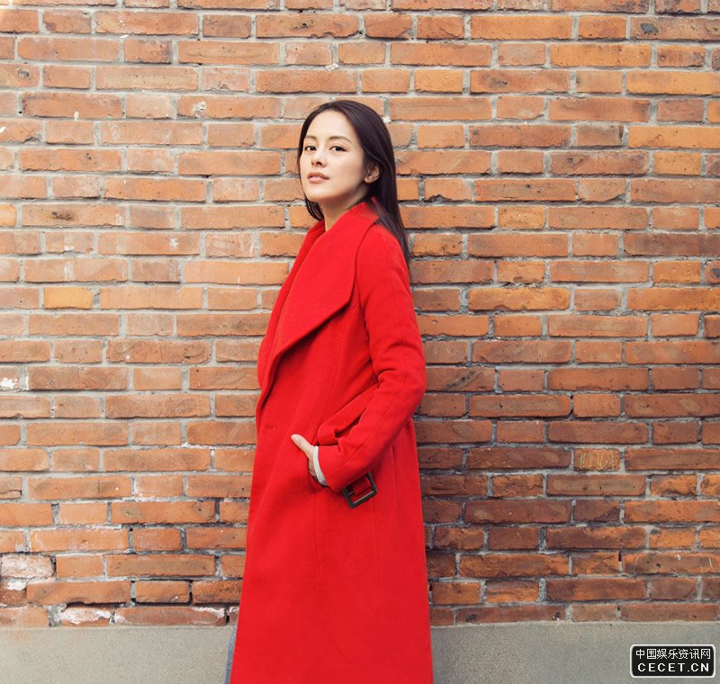 王力可冬日時(shí)尚街拍 紅色大衣盡顯清新脫俗
