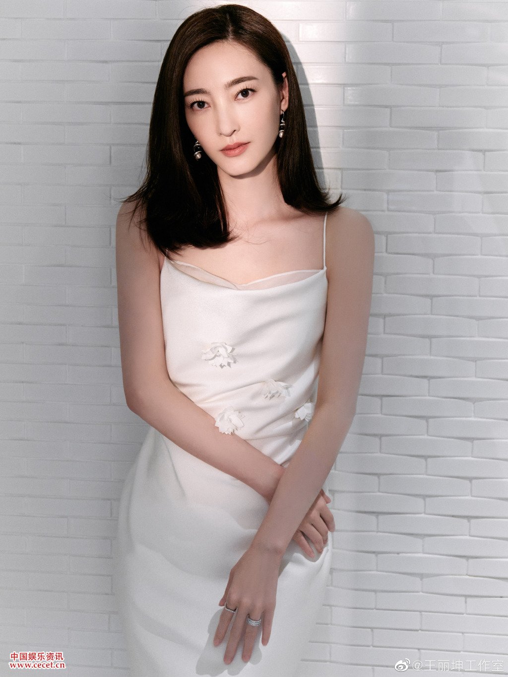 王麗坤吊帶白長(cháng)裙美照 散發(fā)披肩清新簡(jiǎn)約